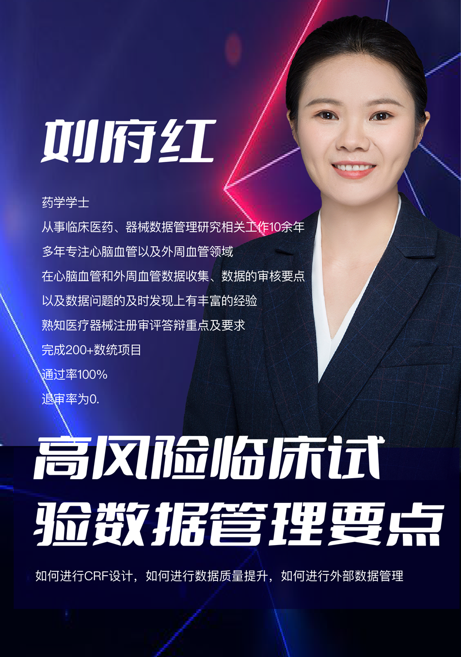 永铭医学数据管理部经理刘府红女士聚焦于高风险临床试验的数据管理要点,针对CRF的设计、数据收集、数据审核、外部数据管理及整体的数据质量提升方面做了详尽的梳理。